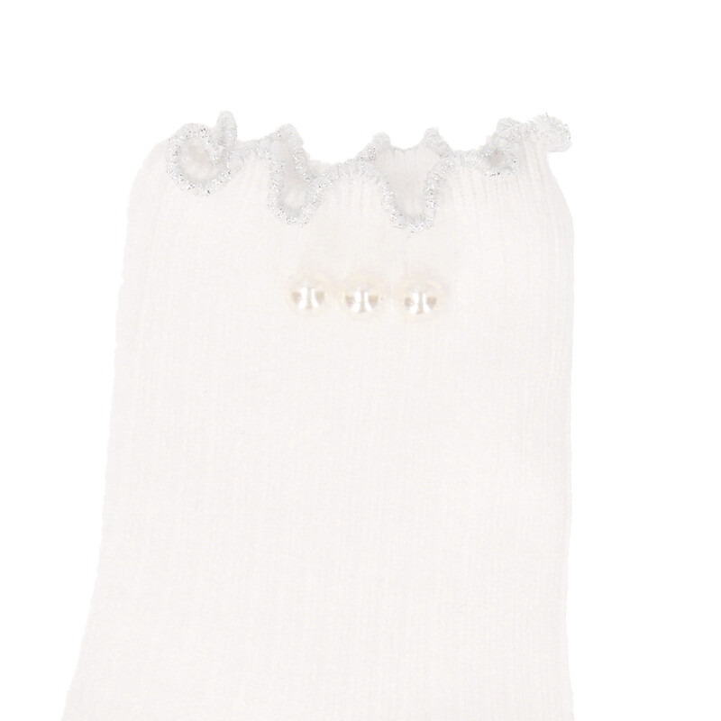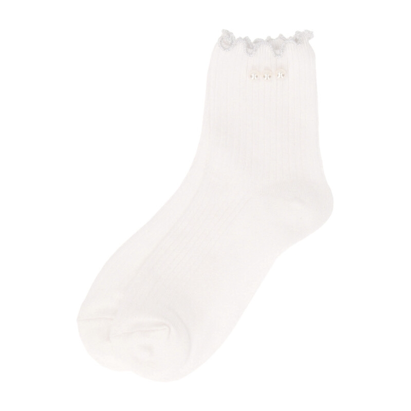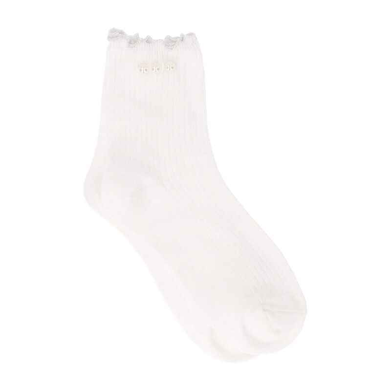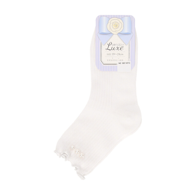 穿き口のフリルに、お花やパールをあしらい可愛らしくおしゃれに。