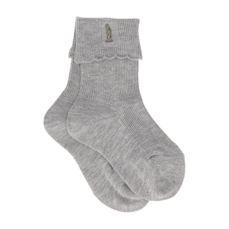 裾をスカラップ調にした、折り返し部分が印象的なクルー丈ソックス。