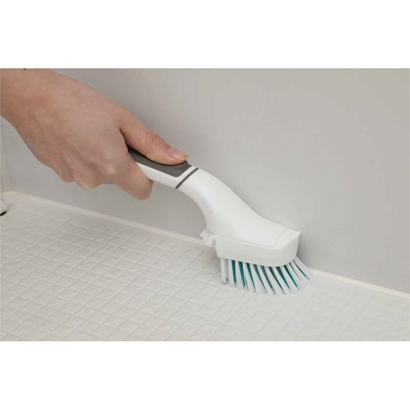ブラシ部分は抗菌加工されています。指ストッパー付のラバーグリップが握りやすく、力が入りやすいです。