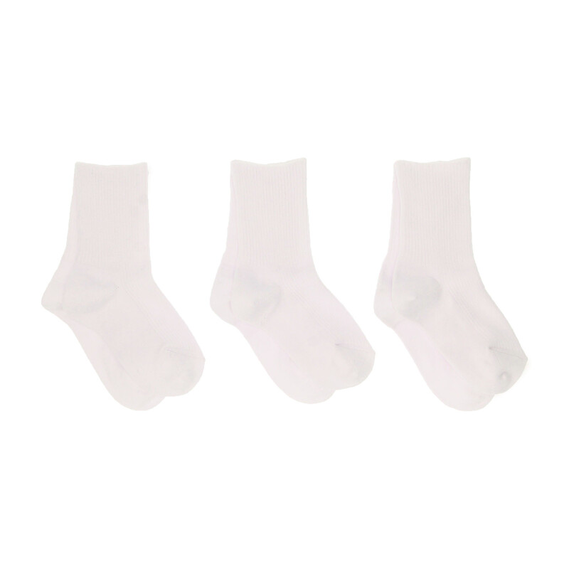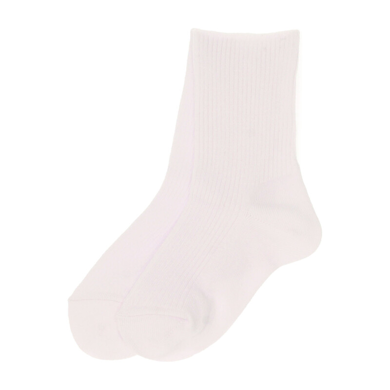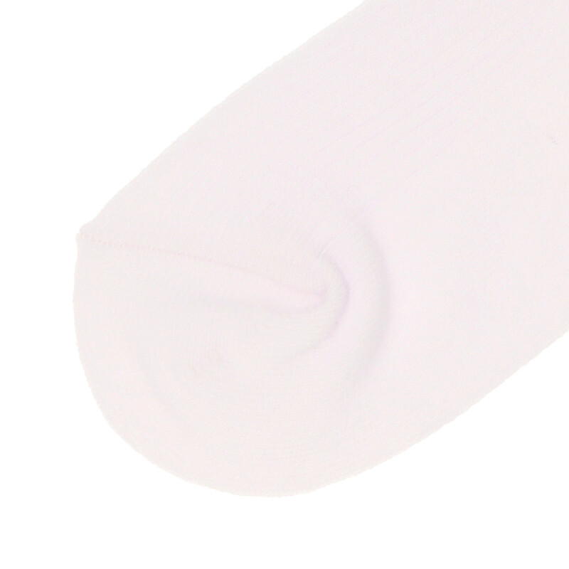 ダメージを受けやすいつま先とかかとに補強を施した、丈夫な作りが魅力のクルー丈ソックス。