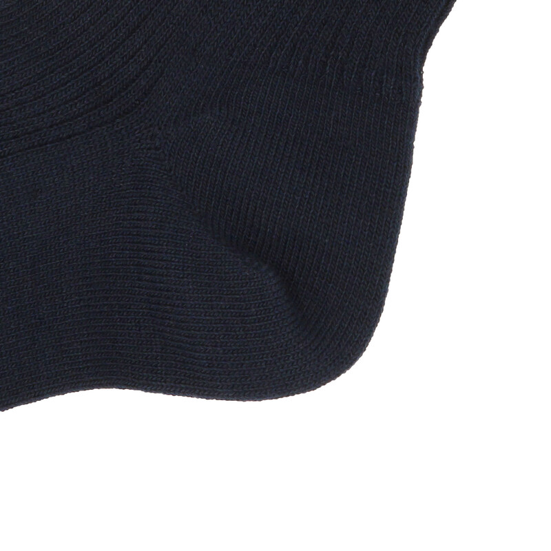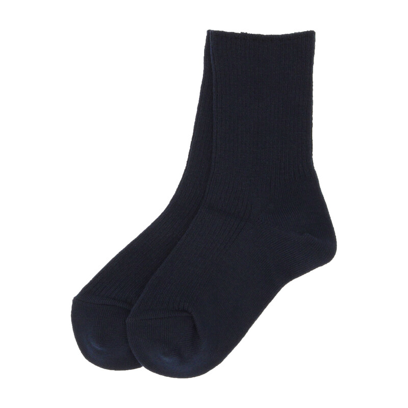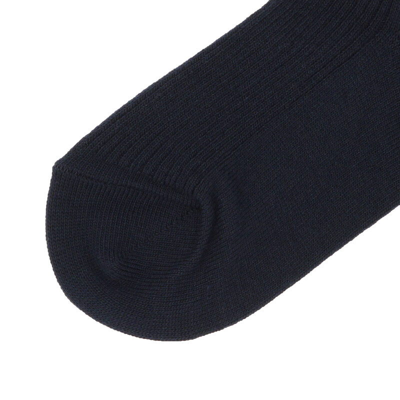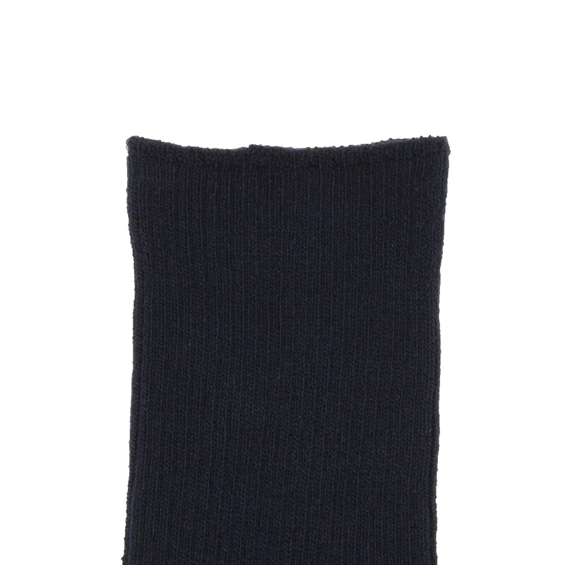 ダメージを受けやすいつま先とかかとに補強を施した、丈夫な作りが魅力のクルー丈ソックス。