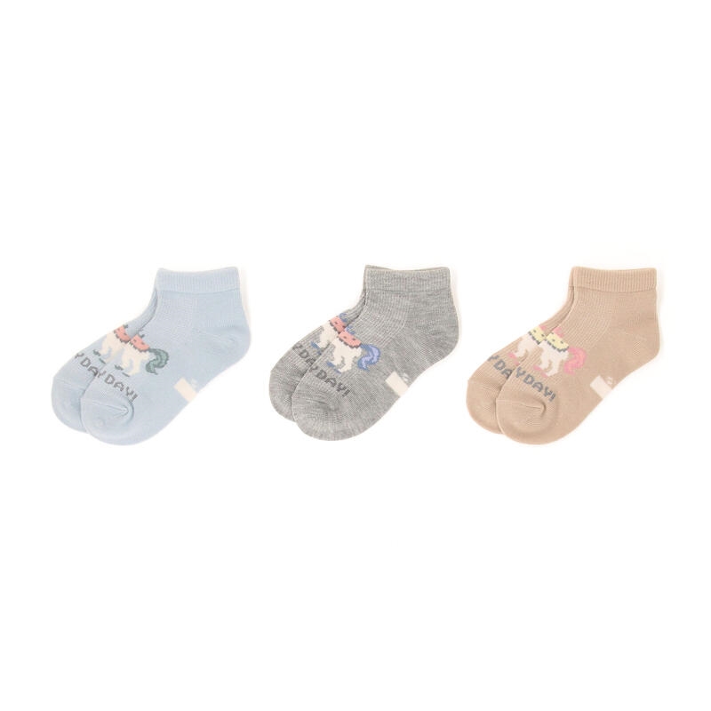 おなまえスペース付きで通園にもおすすめ、女のコにぴったりな柄違いの3足セットです。