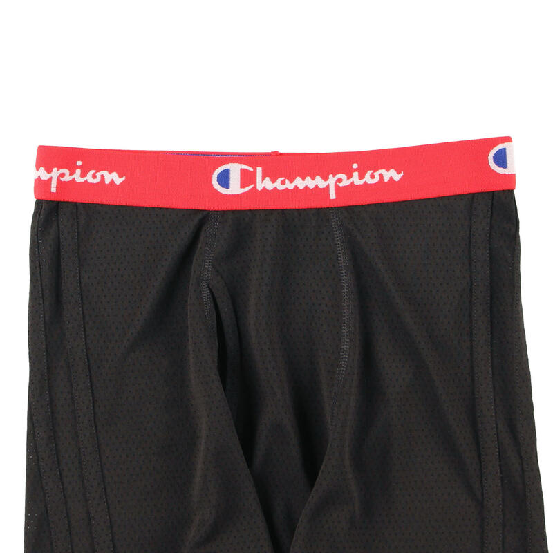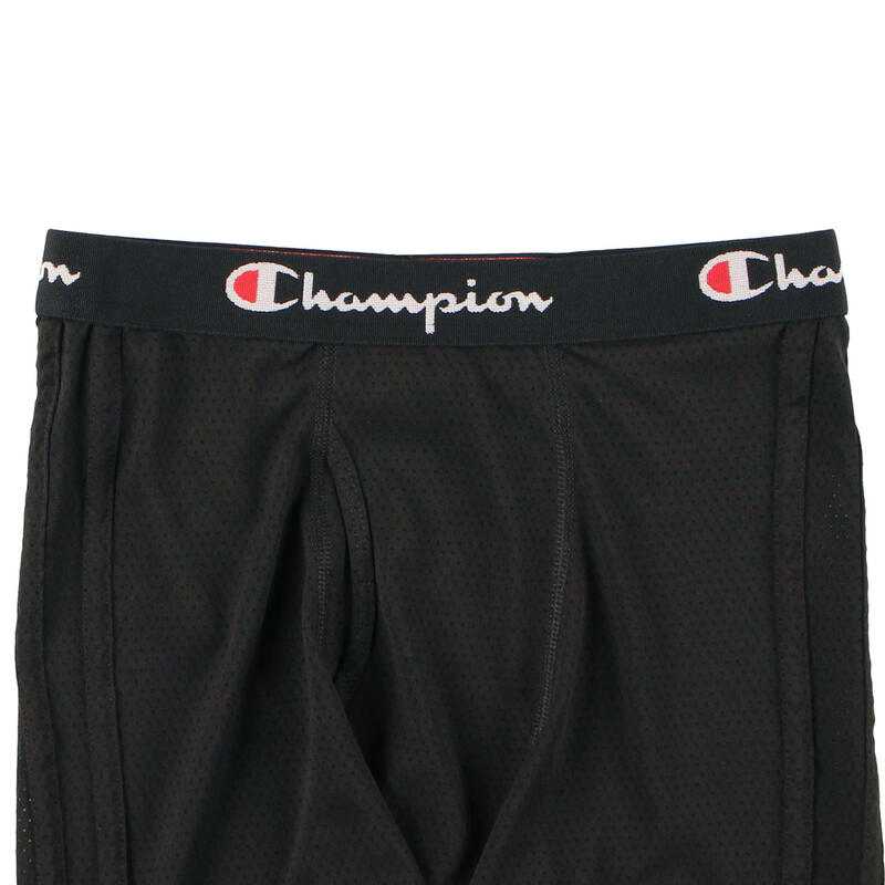 ウエストゴムの全周にCHAMPIONロゴを入れ、前立てのパイピング仕様とサイドに入れた