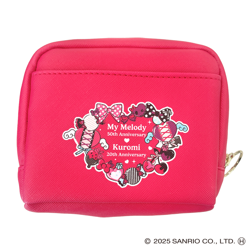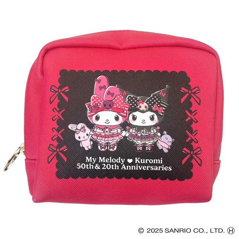 マイメロディ50周年、クロミ20周年を記念した限定コラボの合皮ポーチです。化粧品や小物を入れるのにオススメ!