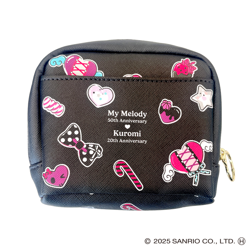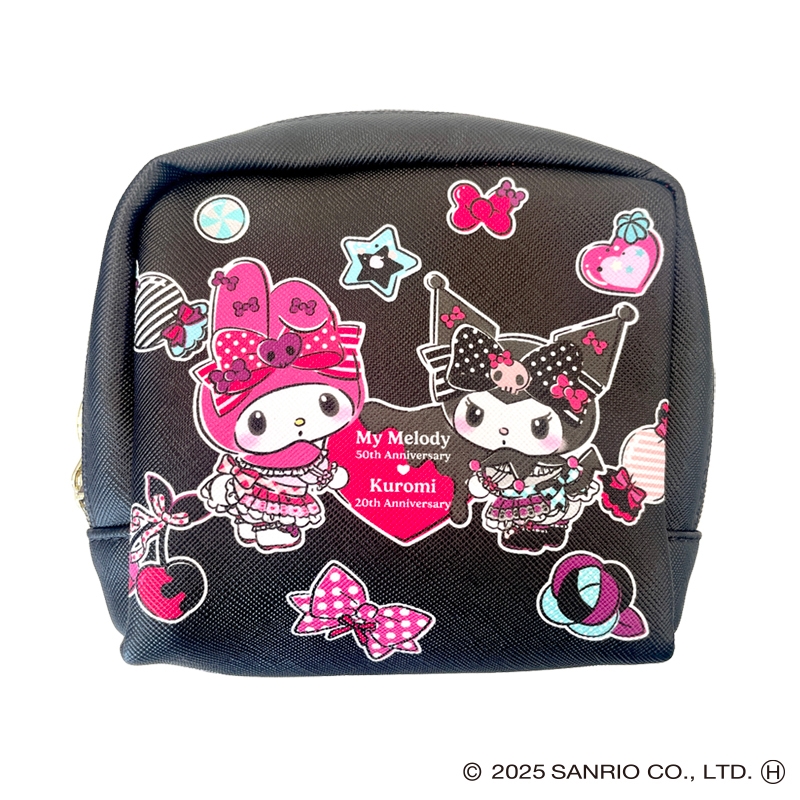 マイメロディ50周年、クロミ20周年を記念した限定コラボの合皮ポーチです。化粧品や小物を入れるのにオススメ!