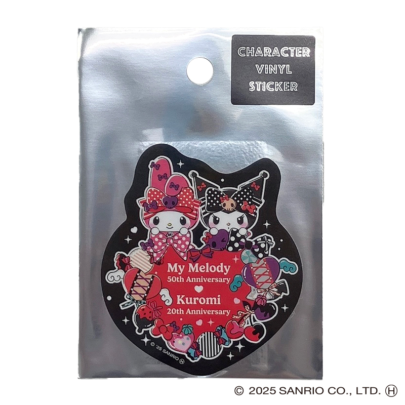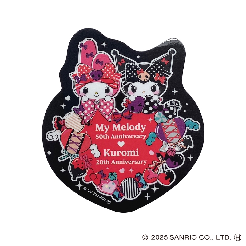 マイメロディ50周年、クロミ20周年を記念した限定コラボのキャラクターステッカーです。貼ったり飾ったり楽しんじゃおう!