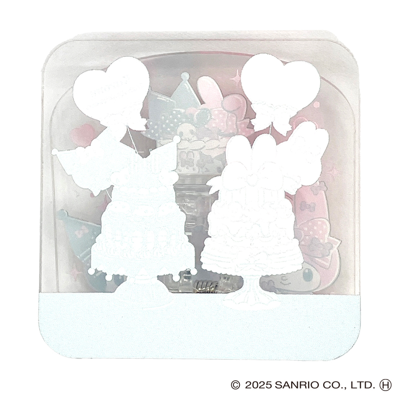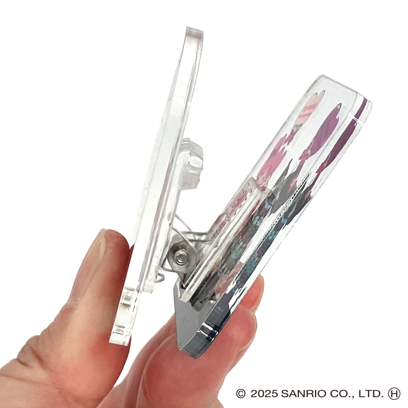 マイメロディ50周年、クロミ20周年を記念した限定コラボのアクリルクリップです。メモを挟んだり飾ったりと色々使えます。