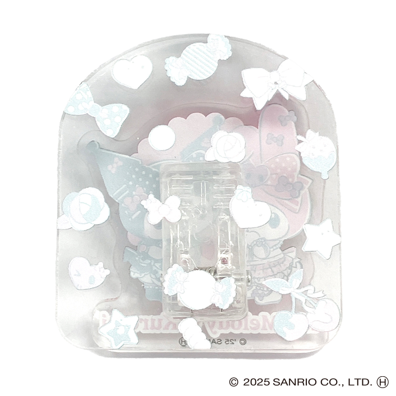 マイメロディ50周年、クロミ20周年を記念した限定コラボのアクリルクリップです。メモを挟んだり飾ったりと色々使えます。
