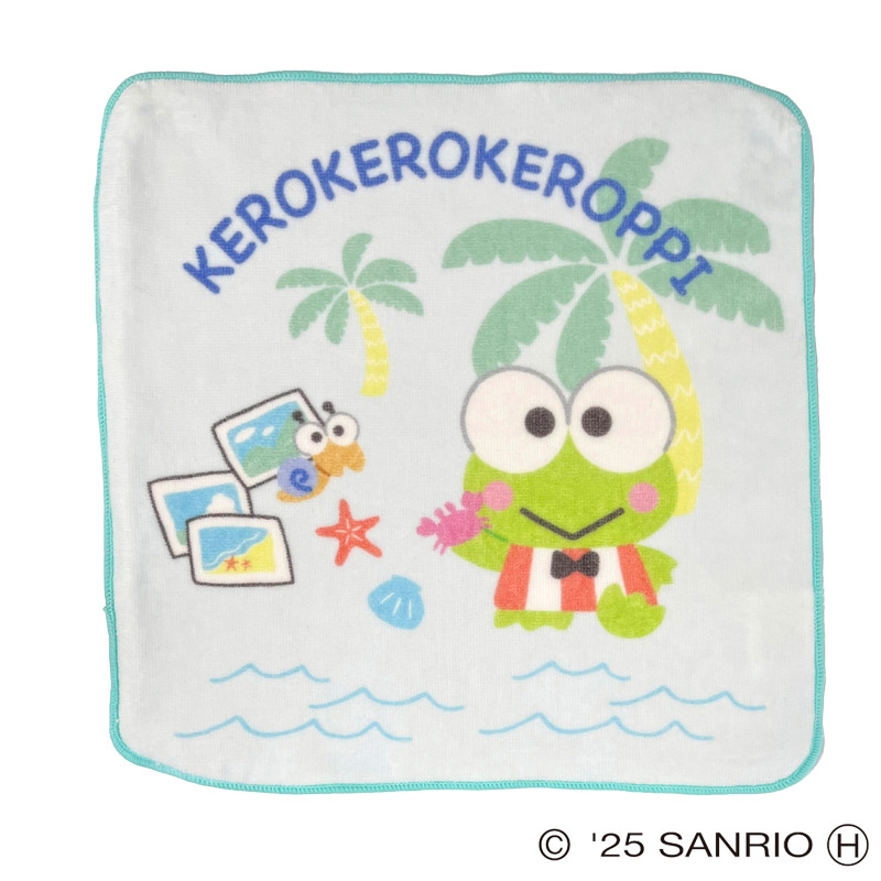 けろけろけろっぴトラベルシリーズのハンドタオルです。けろっぴと一緒にお出かけ!