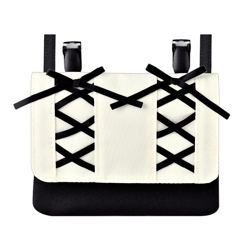コーデしやすいリボンデザイン。ショルダーひも付きなのでポシェット風にも使える2WAY仕様です。