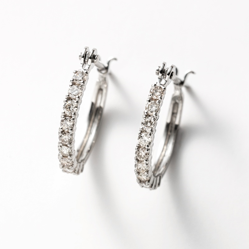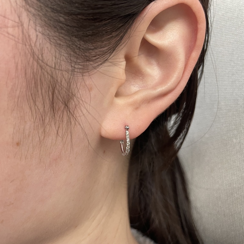 耳元に煌めくハーフエタニティピアス。いろんな装いにも合わせやすいベーシックなデザインです。