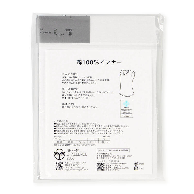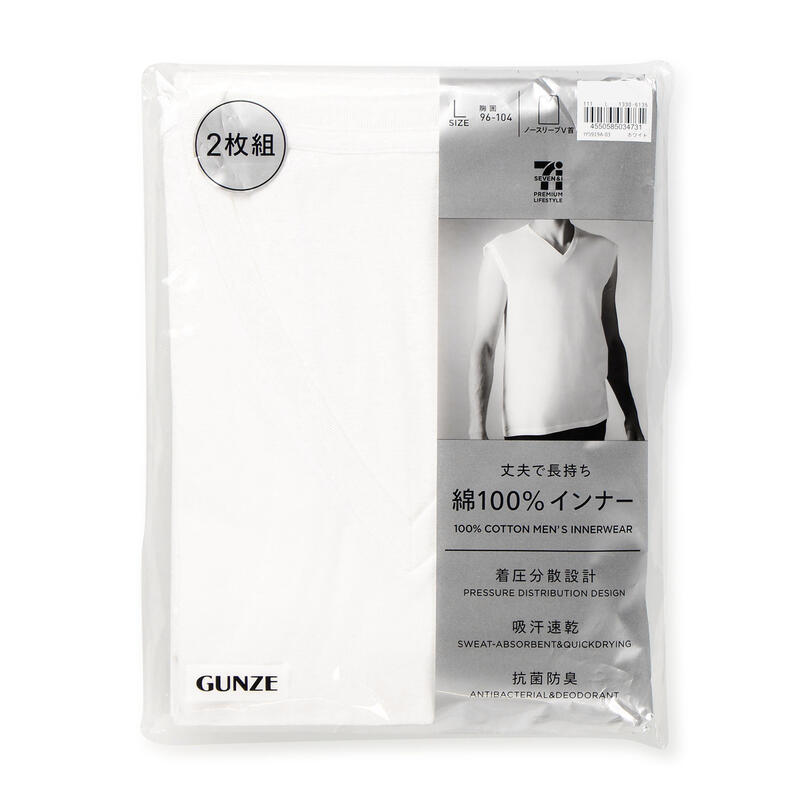 セブンプレミアムライフスタイル 紳士 丈夫で長持ち 綿100% ノースリーブV首 2枚組