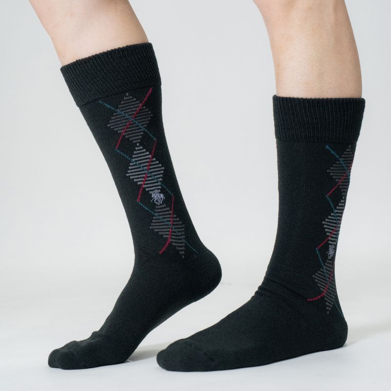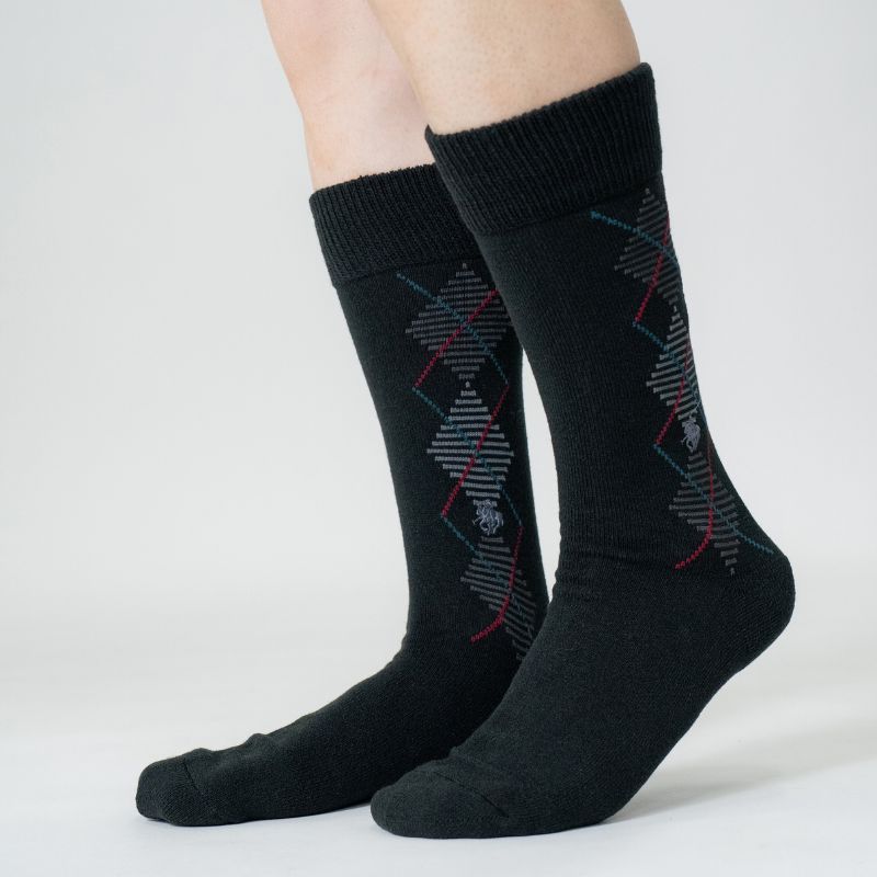 グンゼ POLOブランドの毛混パイルダイヤ柄レギュラー丈ソックスです。