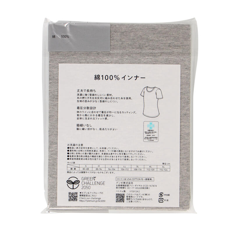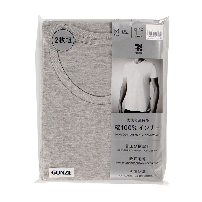 セブンプレミアムライフスタイル 紳士 丈夫で長持ち 綿100% 半袖丸首 2枚組