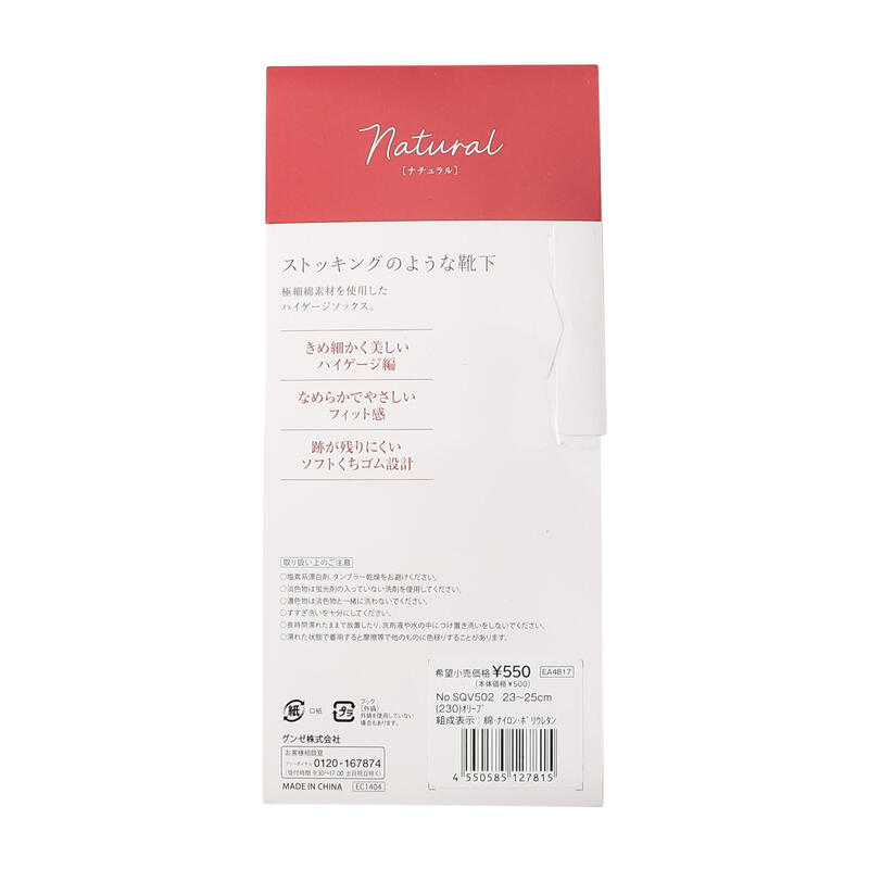 フィット感が優しく、着用後の跡が残りにくいソフト口ゴム設計です。