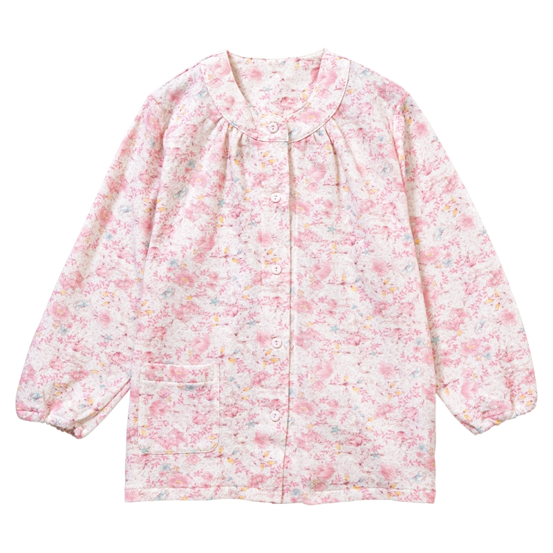 袖ぐり内側にカラーステッチの目印付き、名前が書けるタグ付き。