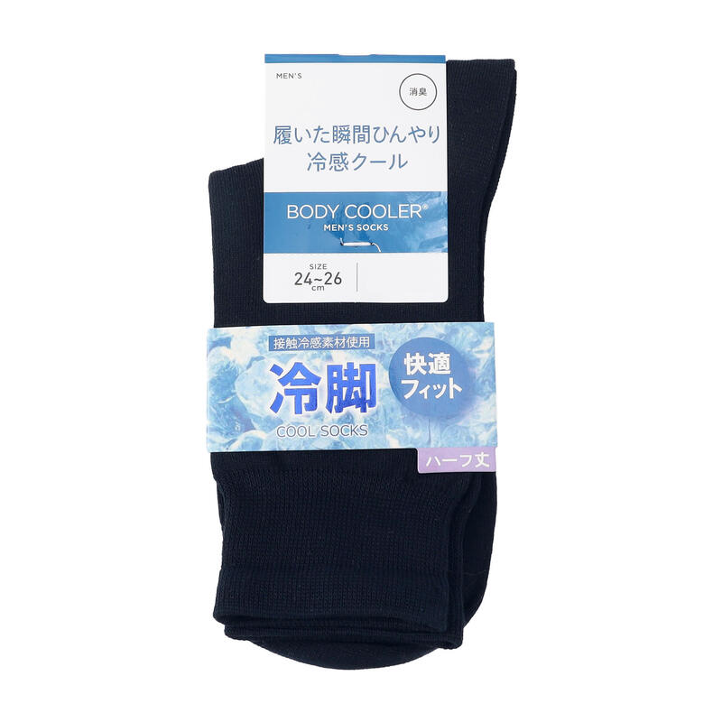 ボディクーラー冷感ストレッチリブハーフ丈ビジネスソックスです。
