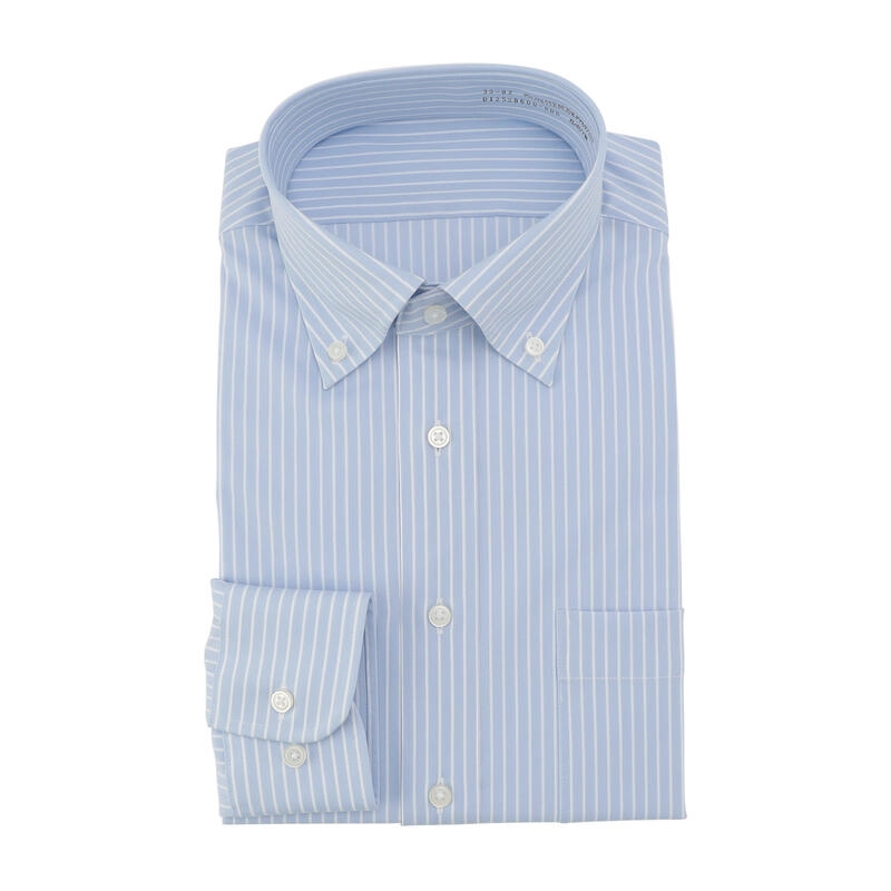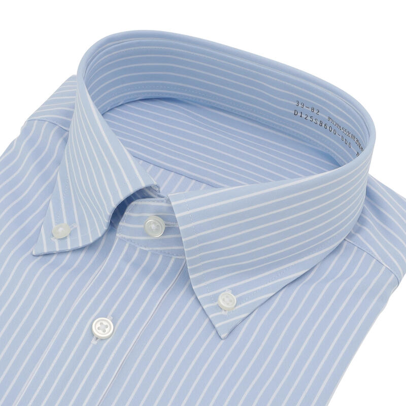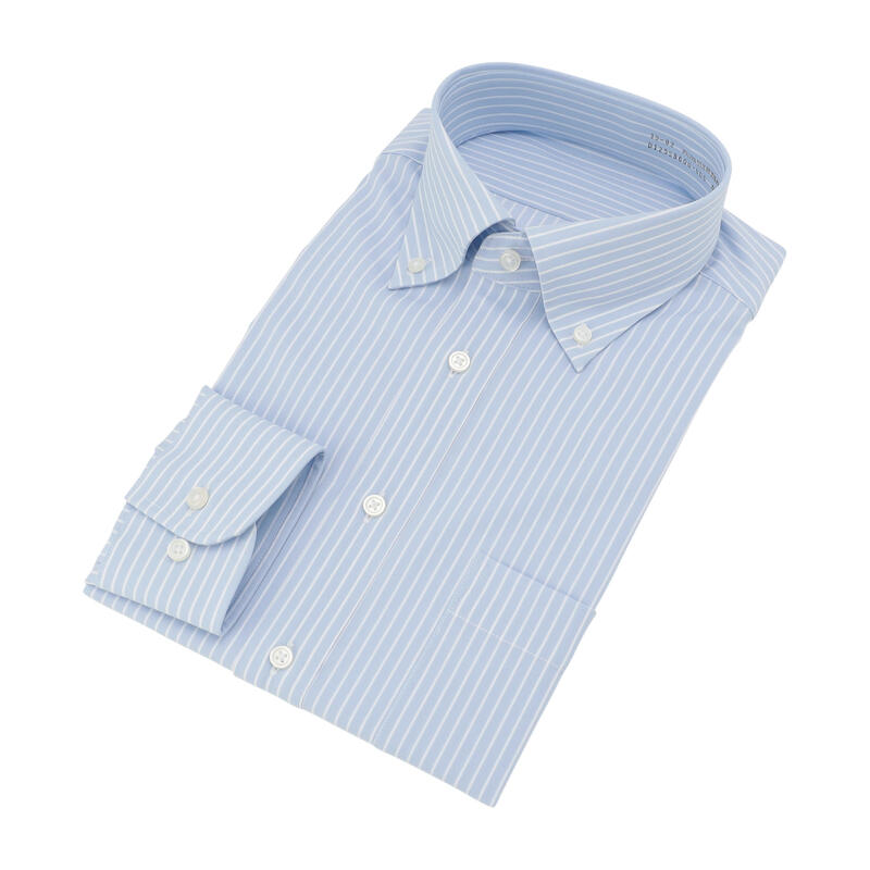 白のストライプがさわやかな印象のボタンダウンシャツ。