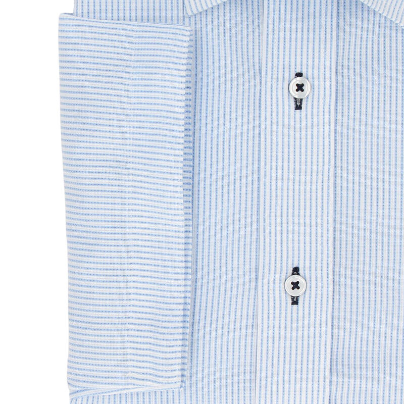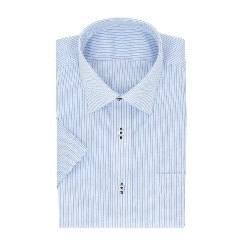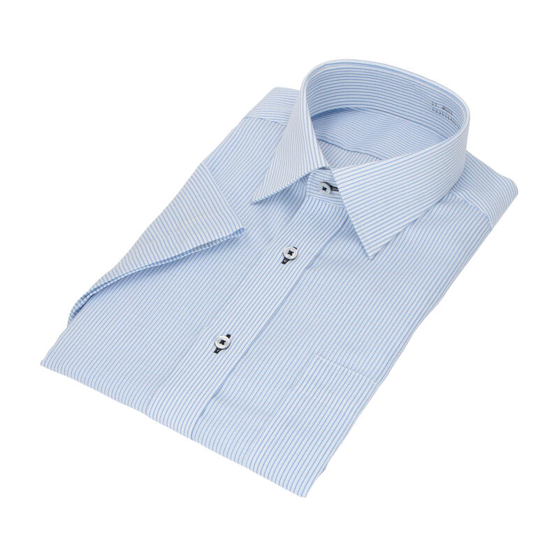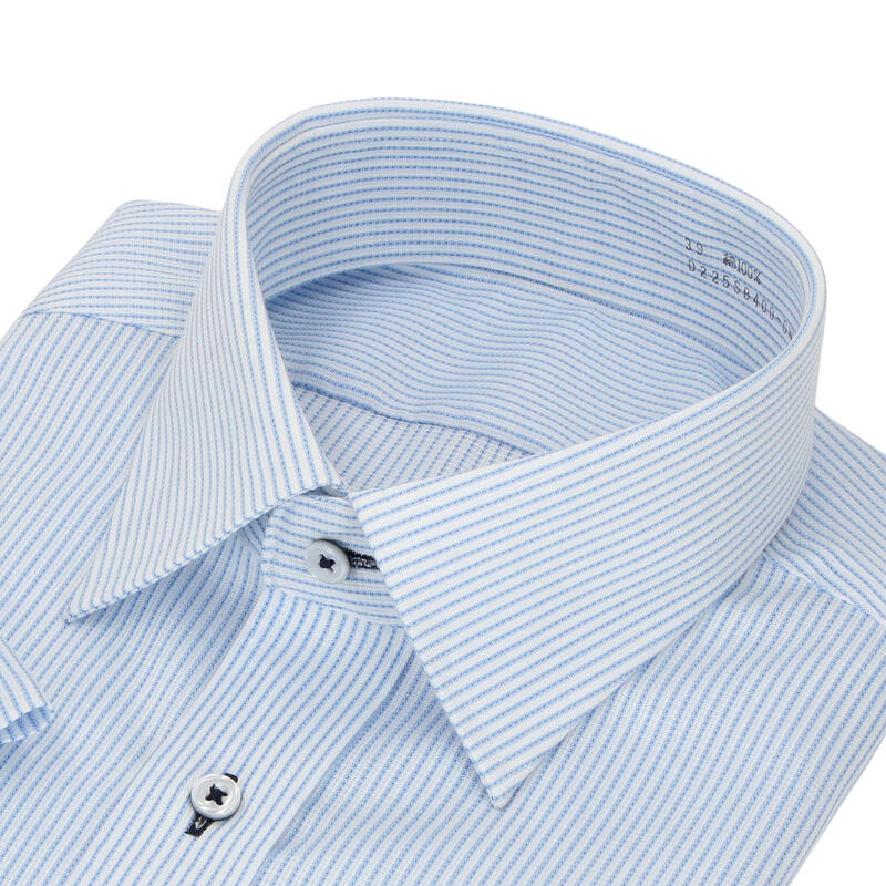 ご自宅でのお手入れが簡単な形態安定機能つきストライプ柄シャツ。