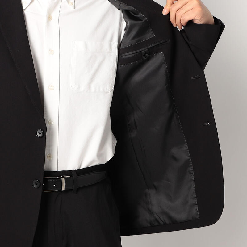 あわせるシャツやネクタイを選ばないシンプルなデザイン、同素材のパンツとのセットアップがおすすめです。