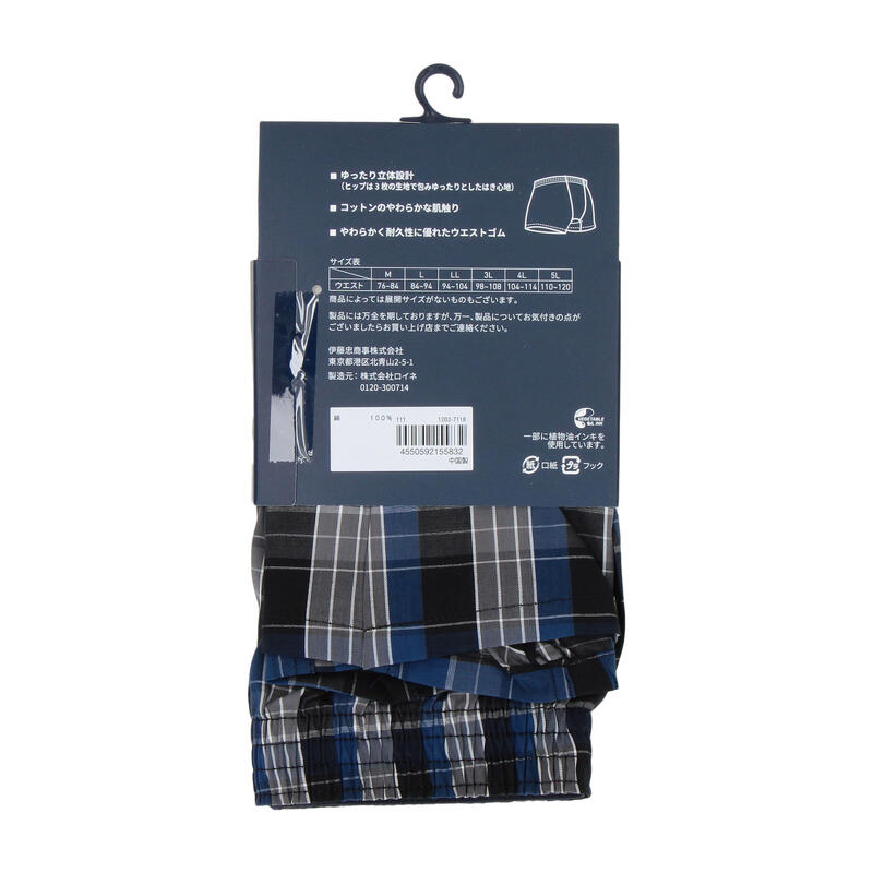 ゆったり立体設計ではき心地快適なブルーチェック柄トランクス。