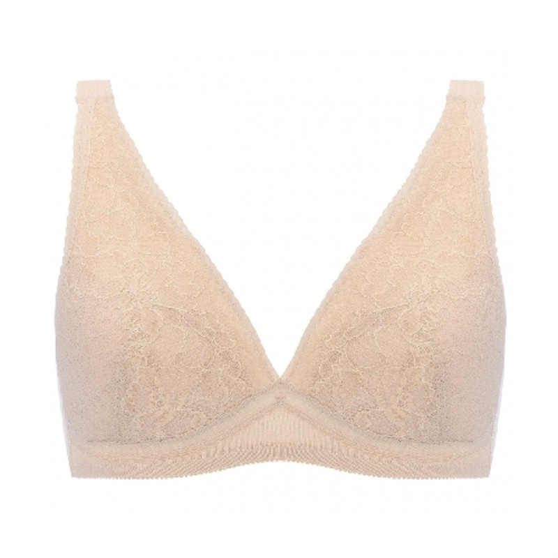 カップ部分から肩へとストレッチレースをあしらったノンワイヤーパデッドブラです。
