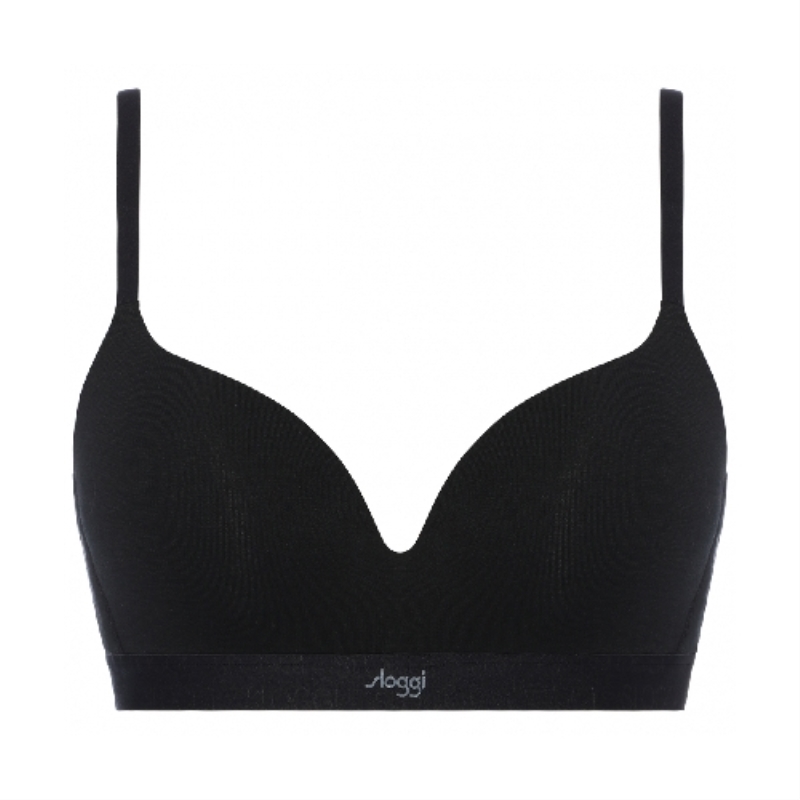 左右一体型のクッションカップがバストを支え、ノンワイヤーでも美しいシルエットをキープします。