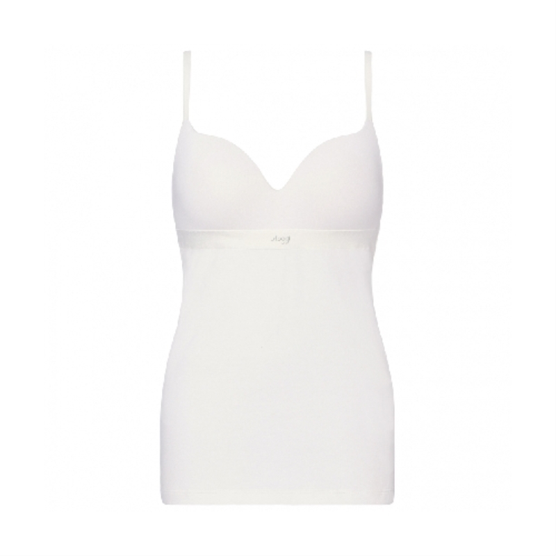 左右一体型のクッションカップがバストを支え、ノンワイヤーでも美しいシルエットをキープします。