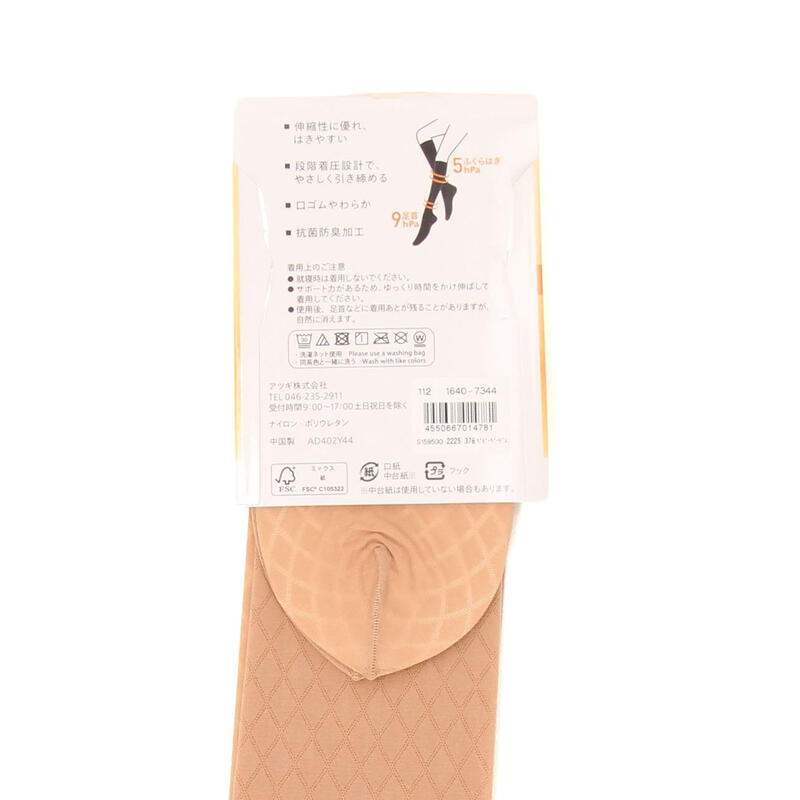 やさしく引き締める、伸縮性に優れはきやすい、段階着圧設計、口ゴムやわらか、抗菌防臭加工