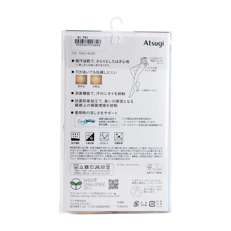 着用時の涼しさをサポートするクールエナジー、UV対策加工、パンティ部メッシュ編み、ヌードトゥ