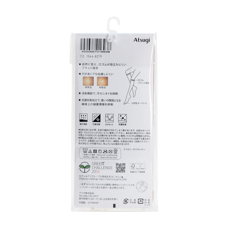 消臭機能、抗菌防臭加工、UV対策加工、口ゴムが目立ちにくいフラット設計、ヌードトゥ