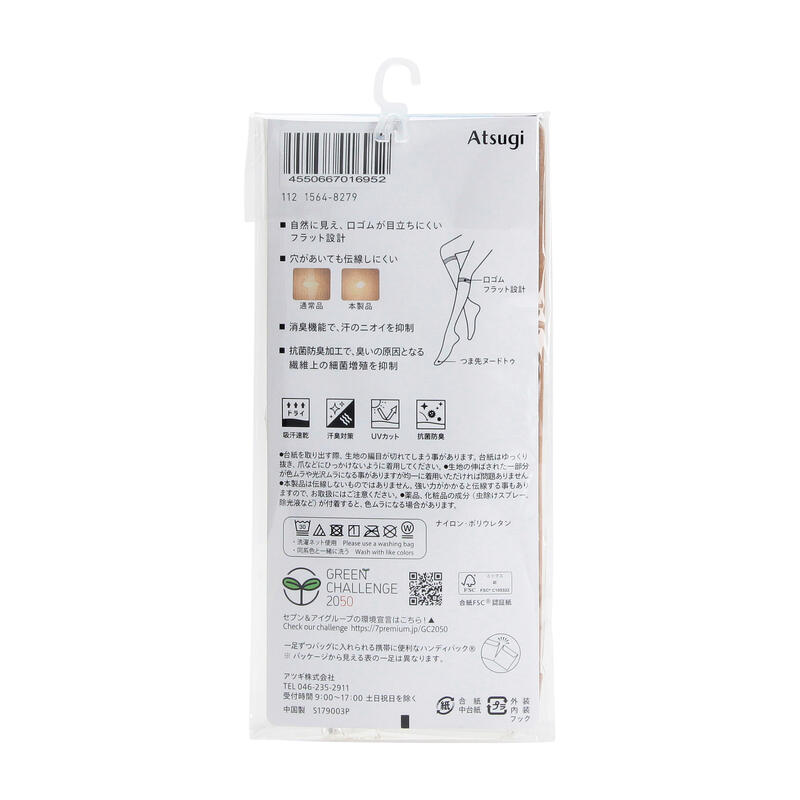 消臭機能、抗菌防臭加工、UV対策加工、口ゴムが目立ちにくいフラット設計、ヌードトゥ