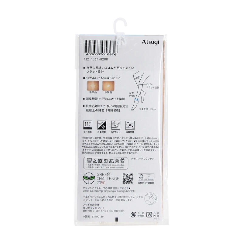 消臭機能、抗菌防臭加工、UV対策加工、足首9hPa、口ゴムが目立ちにくいフラット設計、ヌードトゥ