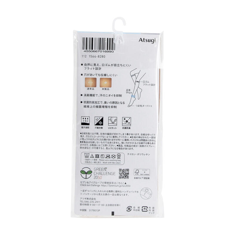 消臭機能、抗菌防臭加工、UV対策加工、足首9hPa、口ゴムが目立ちにくいフラット設計、ヌードトゥ