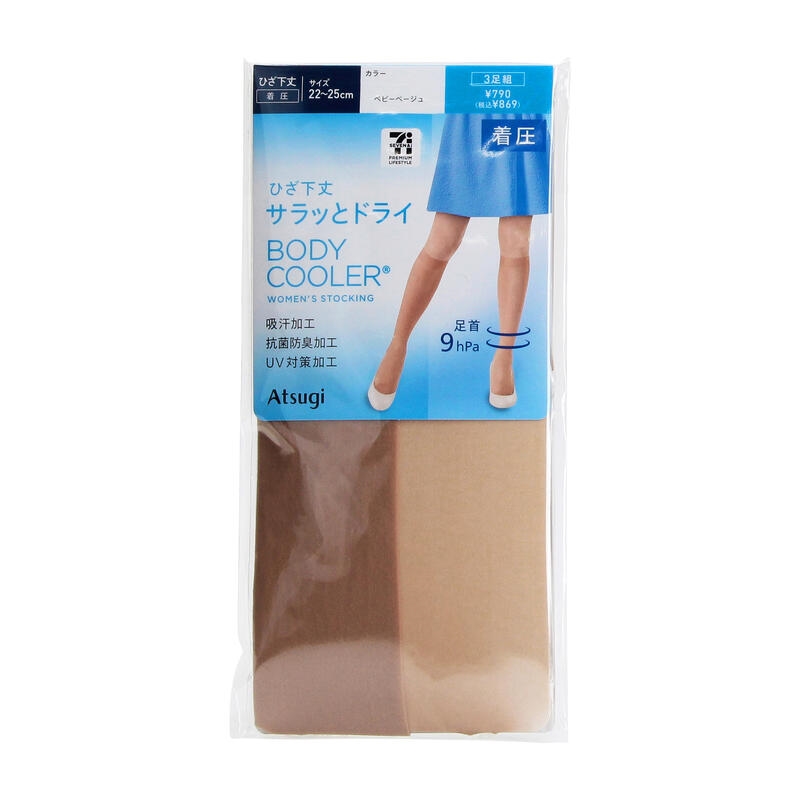 ボディクーラーショートストッキング着圧ひざ下丈3足組。