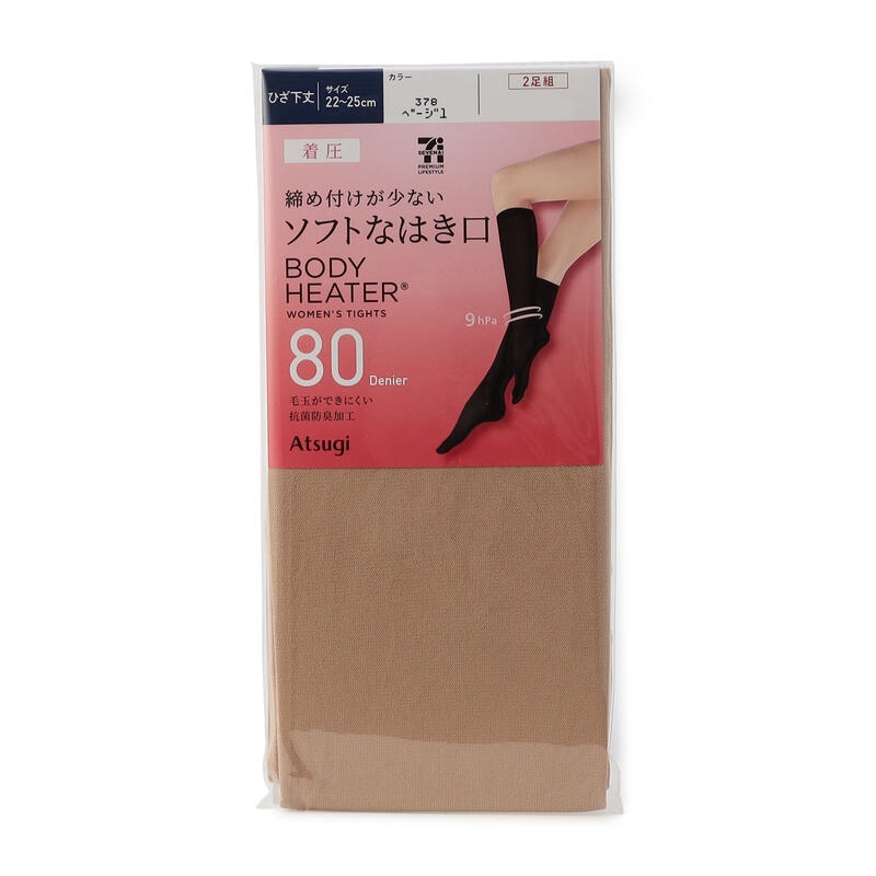 セブンプレミアムボディヒーター80デニールタイツ着圧ひざ下丈2足組。