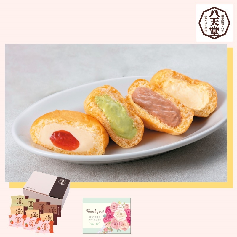 カスタード・あまおう苺×各3、チョコレート・抹茶×各2 メッセージカード付