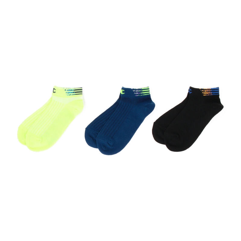 ノンパイル仕様の3足組スニーカー丈ソックス。