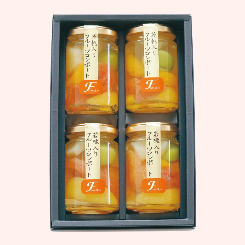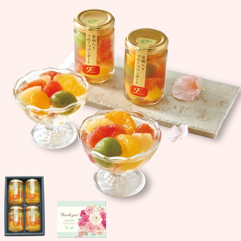 140g(甘夏・グレープフルーツ・温州みかん・若桃・パイナップル)×4、メッセージカード付