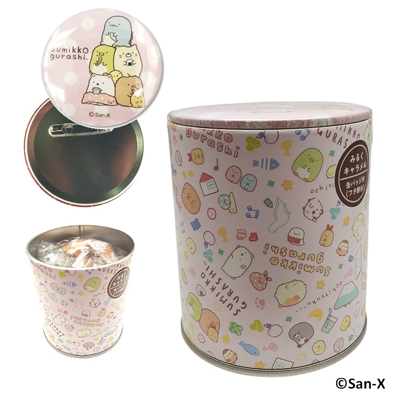 フタが缶バッジになる!キャラメル入りデザイン缶