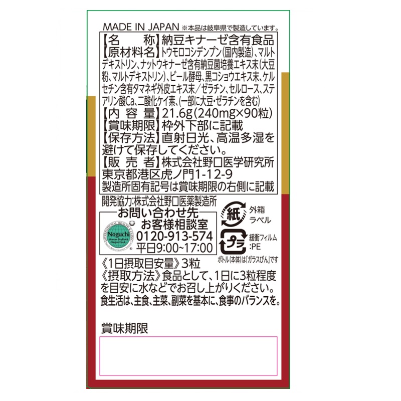 ナットウキナーゼを3,000FU(1日目安量)配合しました。