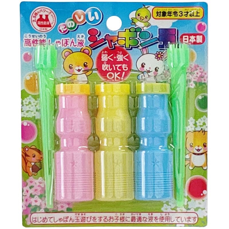 しゃぼん液3本、ストロー型の吹き口2本もついています。