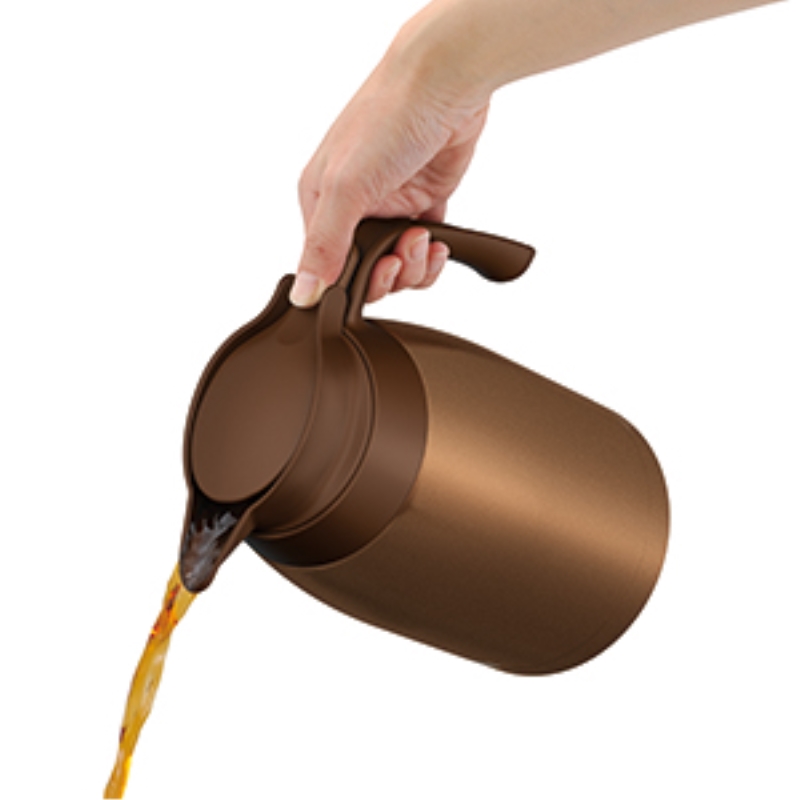 ステンレス素材を生かしたシンプルなデザインのポットは、保温も保冷もでき、飲みものを最適の温度に保ちます。