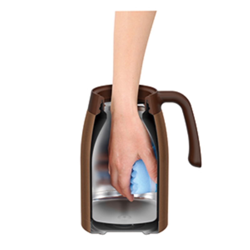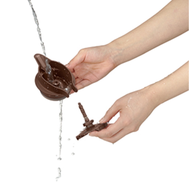 注ぎやすいワンタッチレバー中せんと、丸洗いできる衛生的なステンレスボディ。