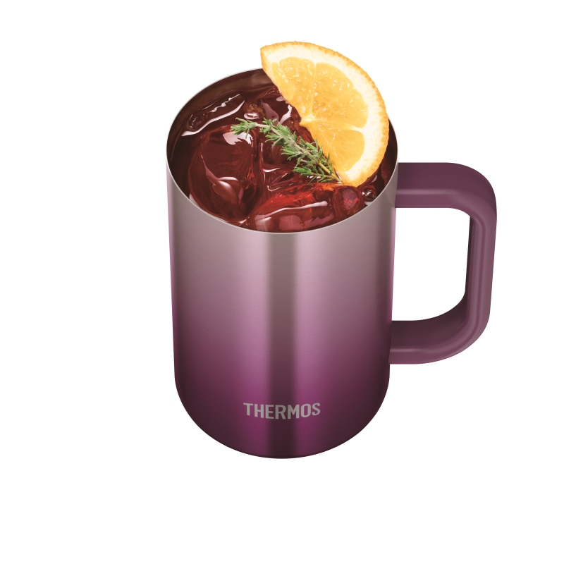 氷を入れてもたっぷり飲める!ステンレス製魔法びん構造のジョッキタイプ!