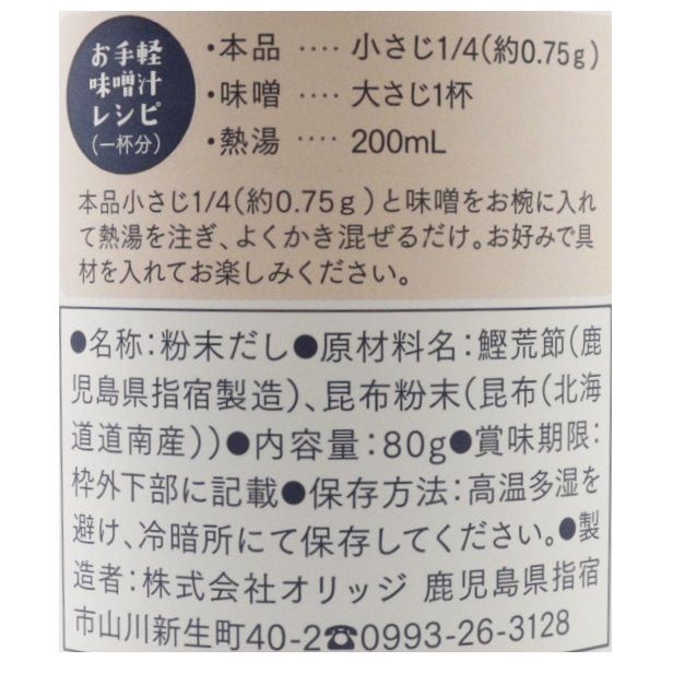 鹿児島県指宿産鰹荒節と北海道道南産昆布のみを使用した体に優しいお出汁です。