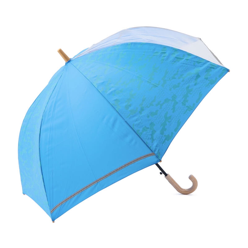 雨の日の視認性を高めるために反射テープや透明窓を採用したジャンプ傘です。