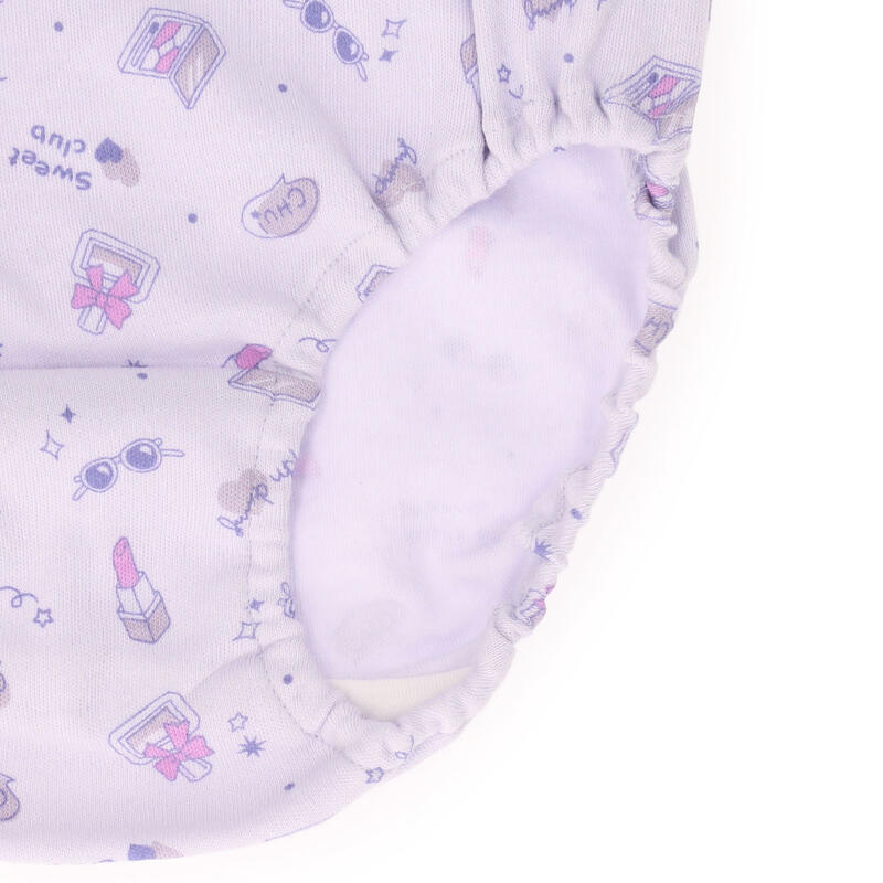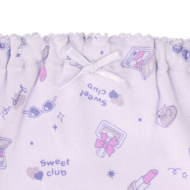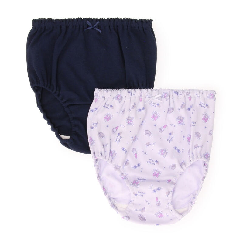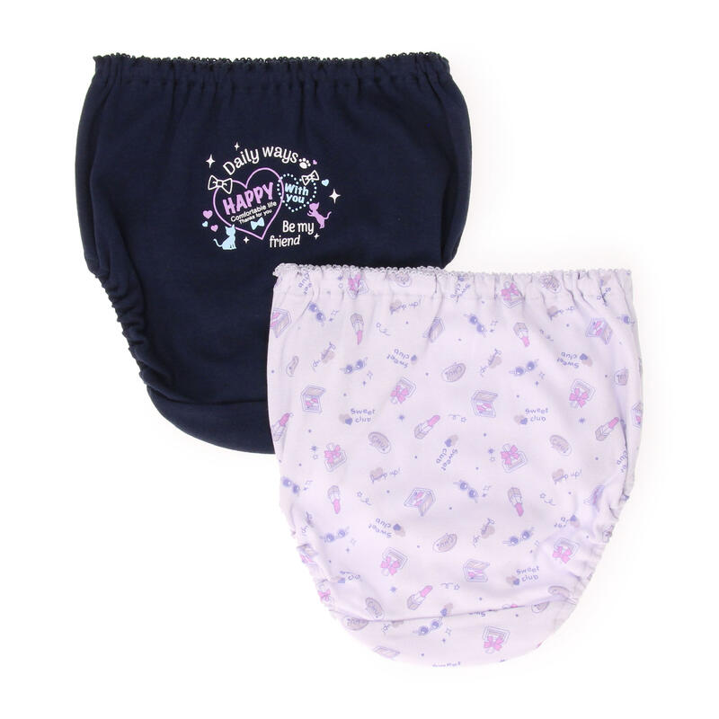 コスメの総柄デザインと猫柄のバックプリントをセットにしたショーツ2枚組。