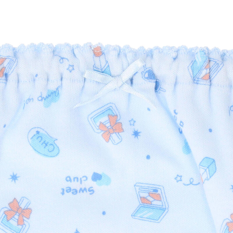 コスメの総柄デザインと猫柄のバックプリントをセットにしたショーツ2枚組。