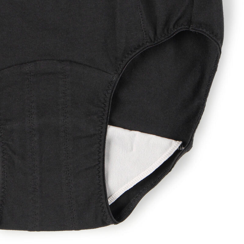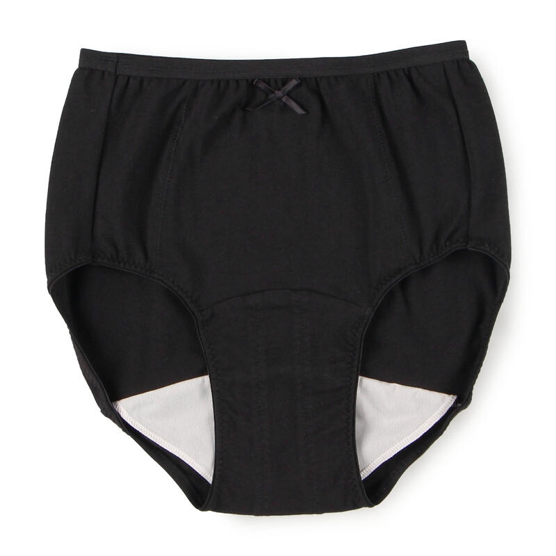 お腹からヒップをすっぽり包み込んで安心、気になるモレを防いでくれます。